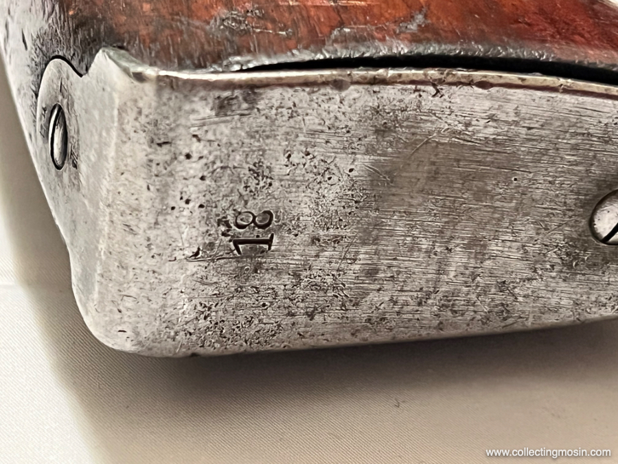I numeri sono di solito parte dei misteri che circondano i Mosin, in questo caso il poggia spalla di un M28 finlandese (foto sopra) è numerato con un “18”. Molti fucili finlandesi mostrano un numero in questa posizione. Quale potrebbe essere il significato?